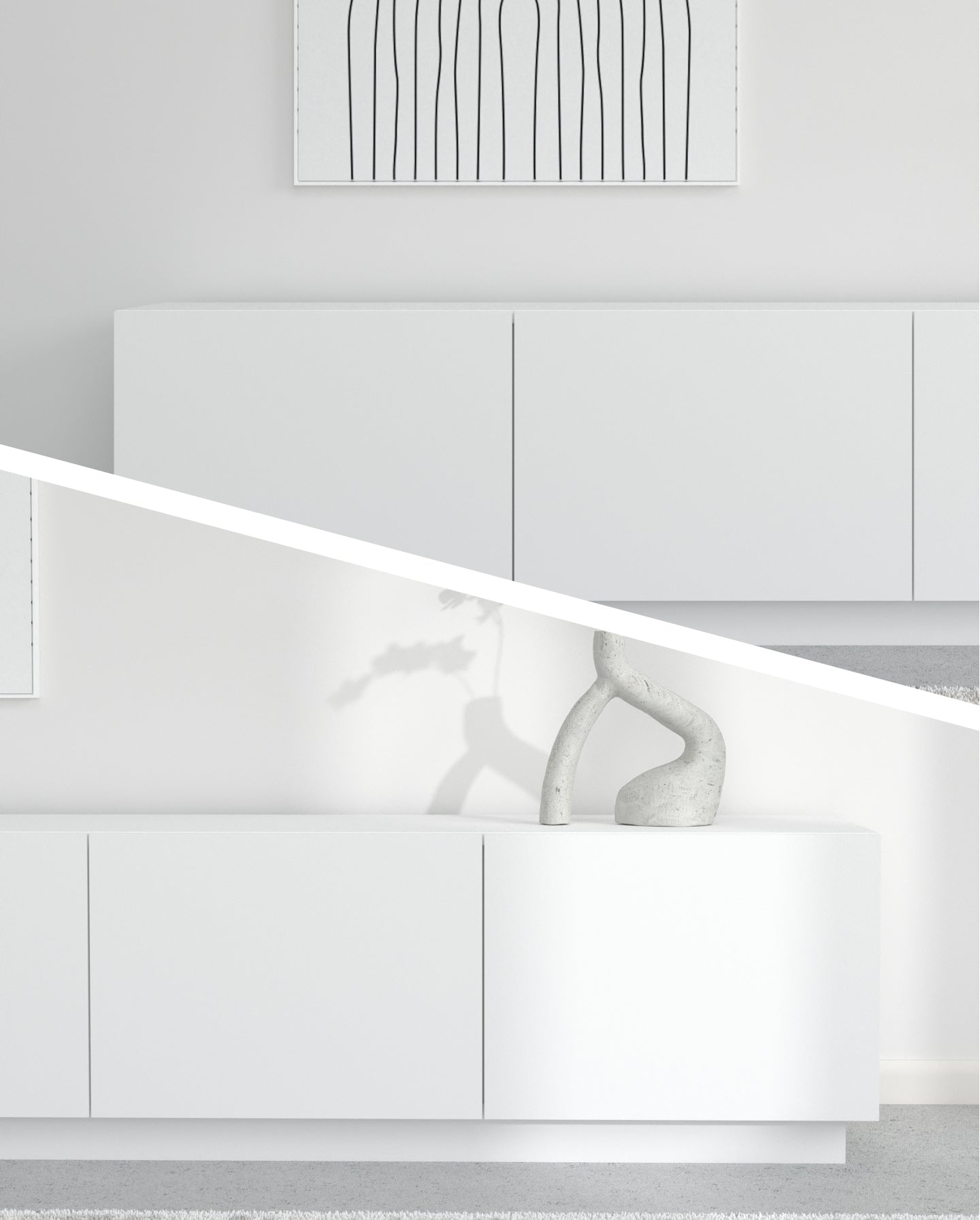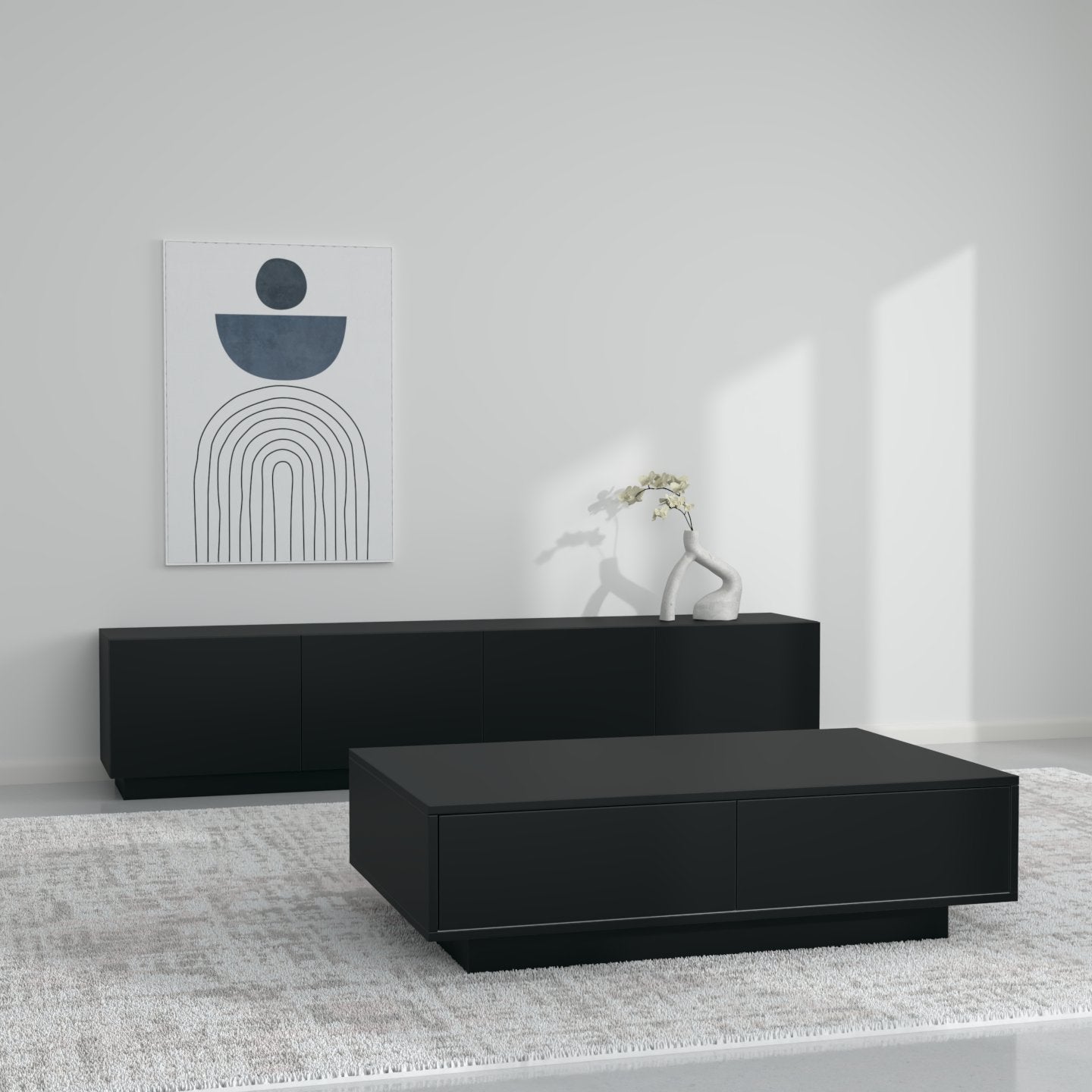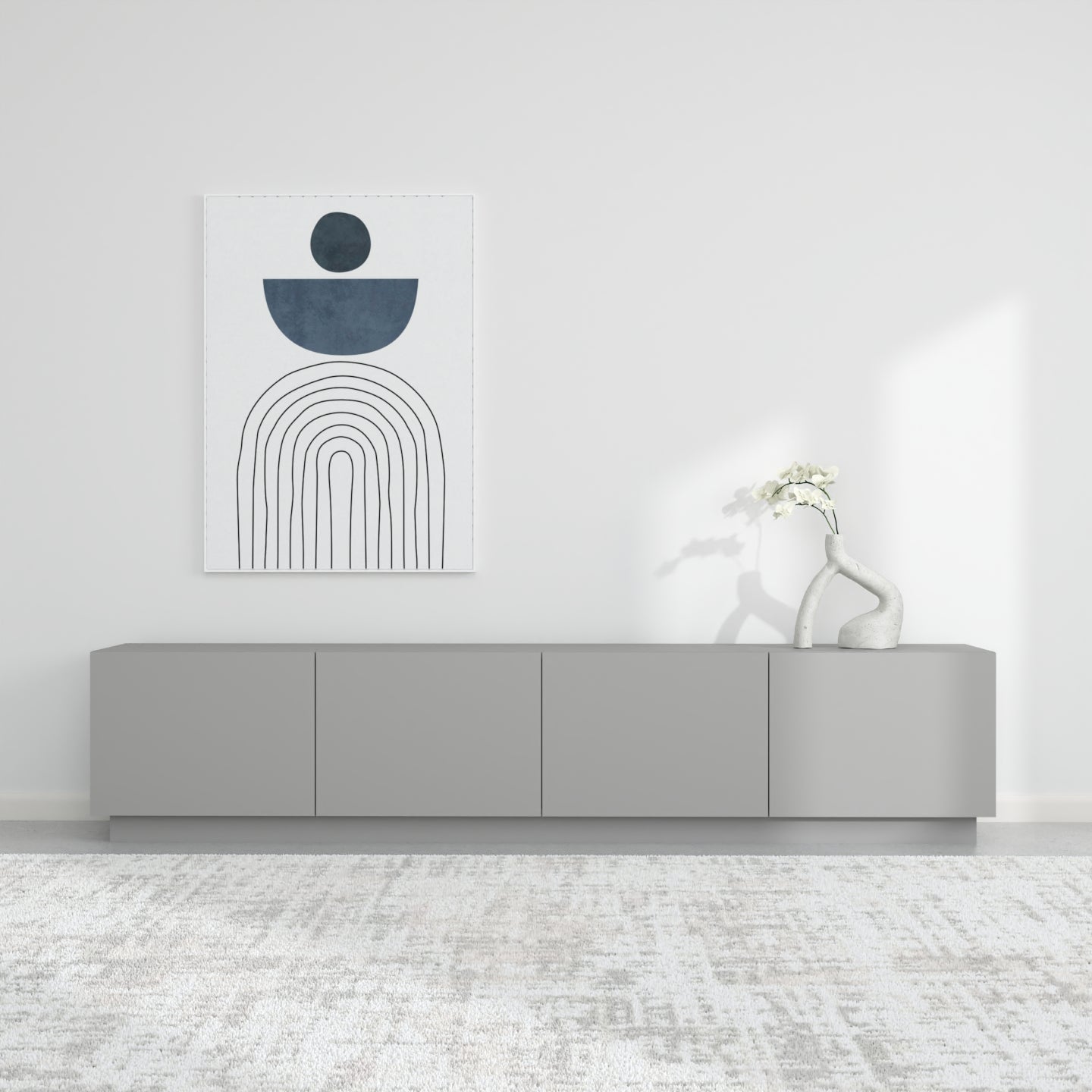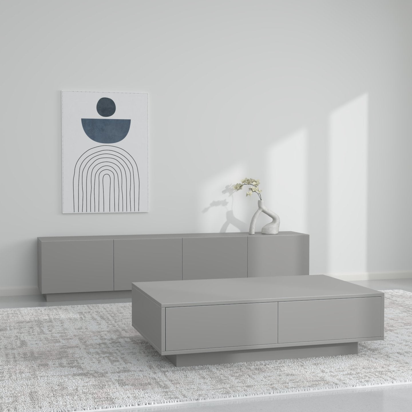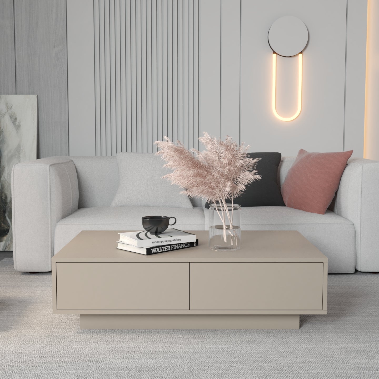 Zgjedhja e pesë ngjyrave neutrale dhe të sofistikuara - e bardha, e zeza, bezhë, blu e errët dhe gri - lejon që komodina të integrohet pa probleme në stile të ndryshme të brendshme, nga bashkëkohore në klasike.