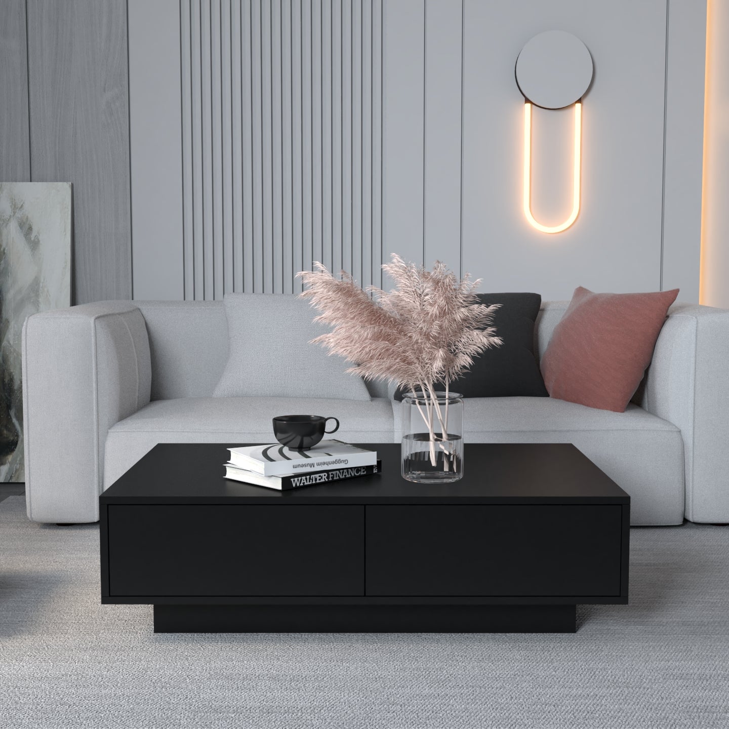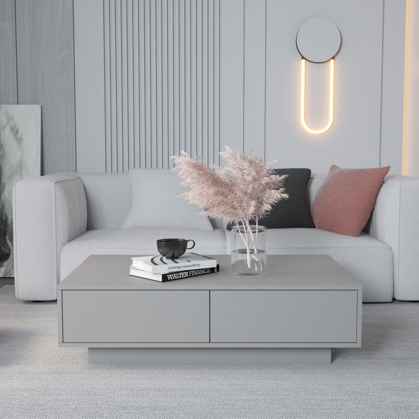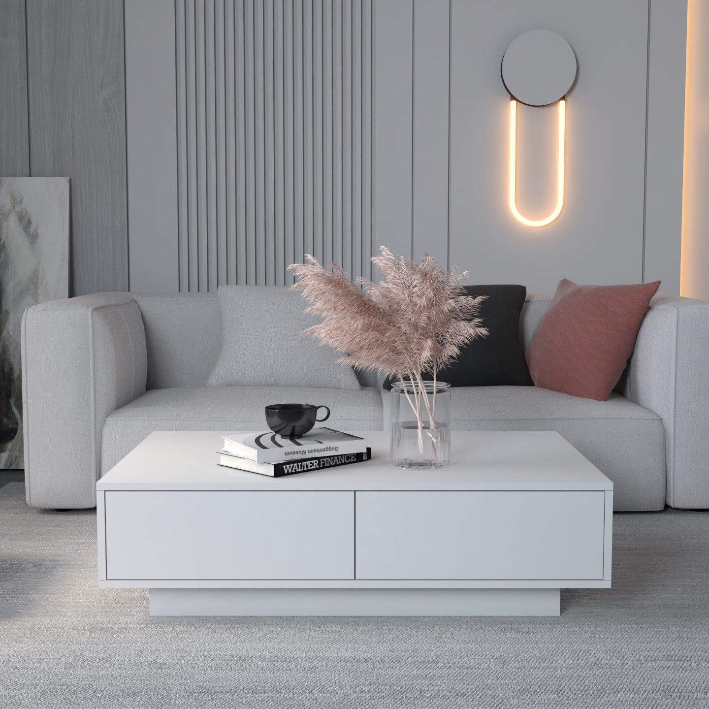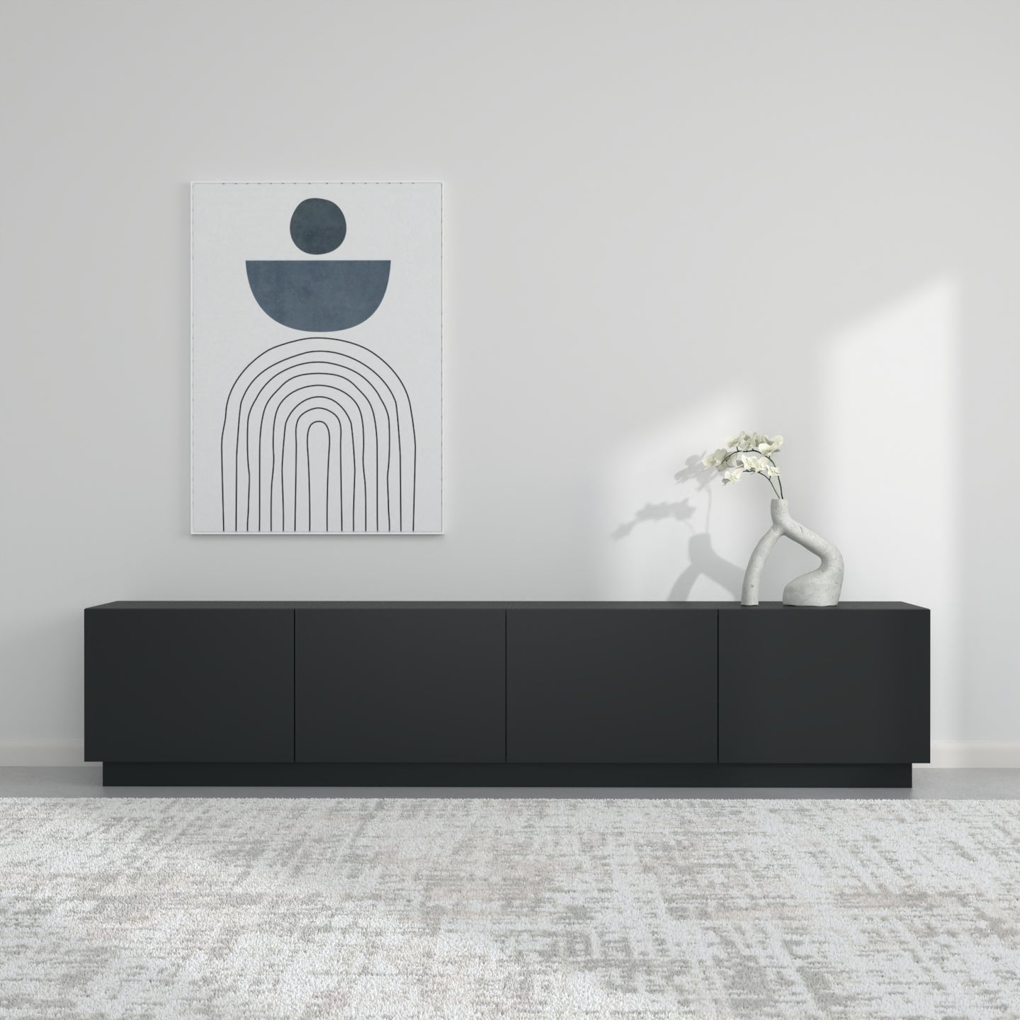 Zgjedhja e pesë ngjyrave neutrale dhe të sofistikuara - e bardha, e zeza, bezhë, blu e errët dhe gri - lejon që komodina të integrohet pa probleme në stile të ndryshme të brendshme, nga bashkëkohore në klasike.