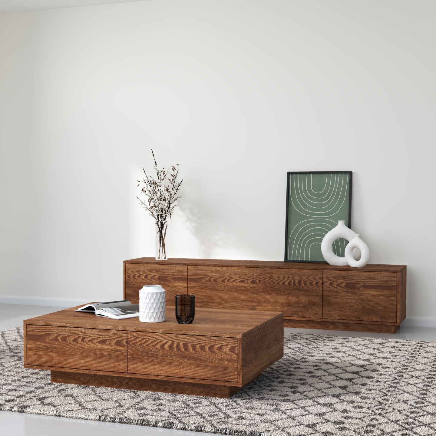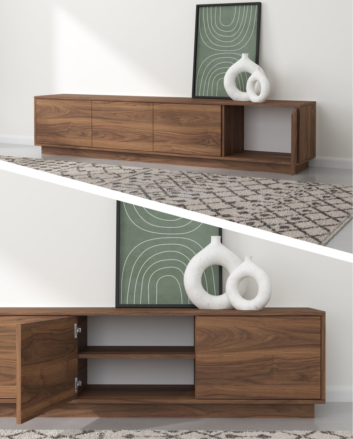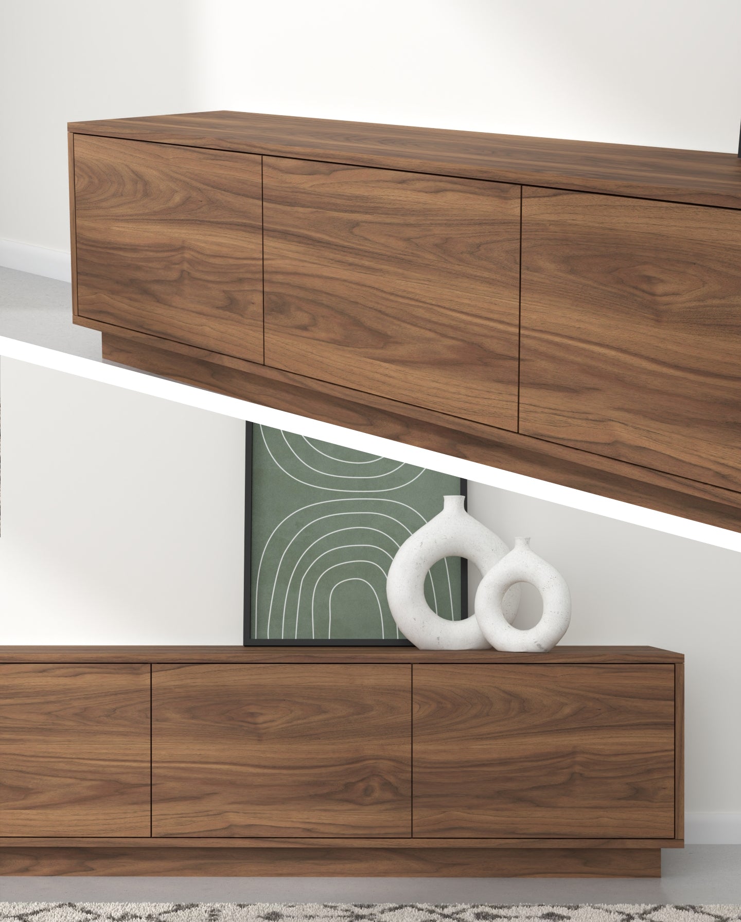 "Horizon" Ky emër ngjall një ndjenjë zgjerimi dhe vazhdueshmërie, duke pasqyruar modelin horizontal të vijave të drurit që rrjedhin nëpër dyert e komodinës. Ai gjithashtu flet për siluetën moderne dhe të hijshme të pjesës, duke përfaqsuar një lidhje me linjën ku toka takohet me qiellin, duke theksuar ekuilibrin dhe harmoninë e natyrshme në filozofinë e saj të dizajnit.