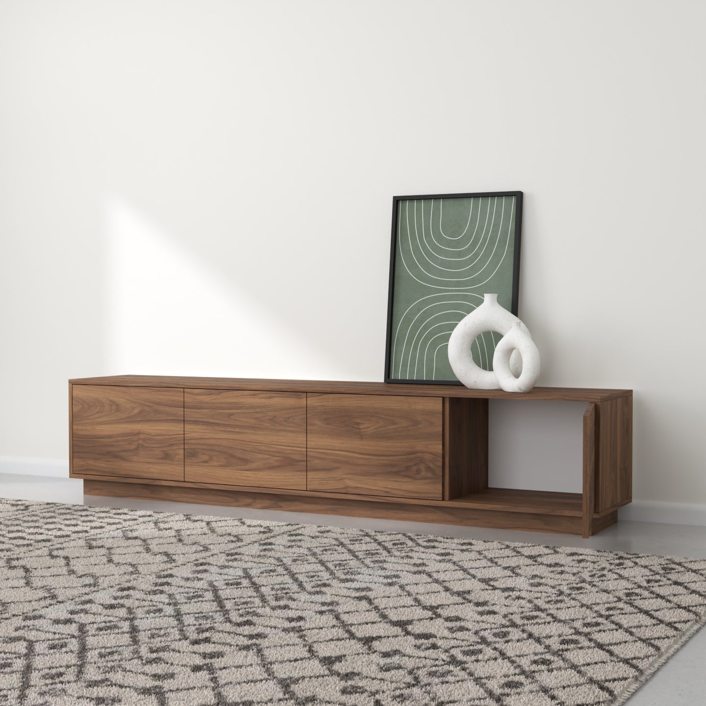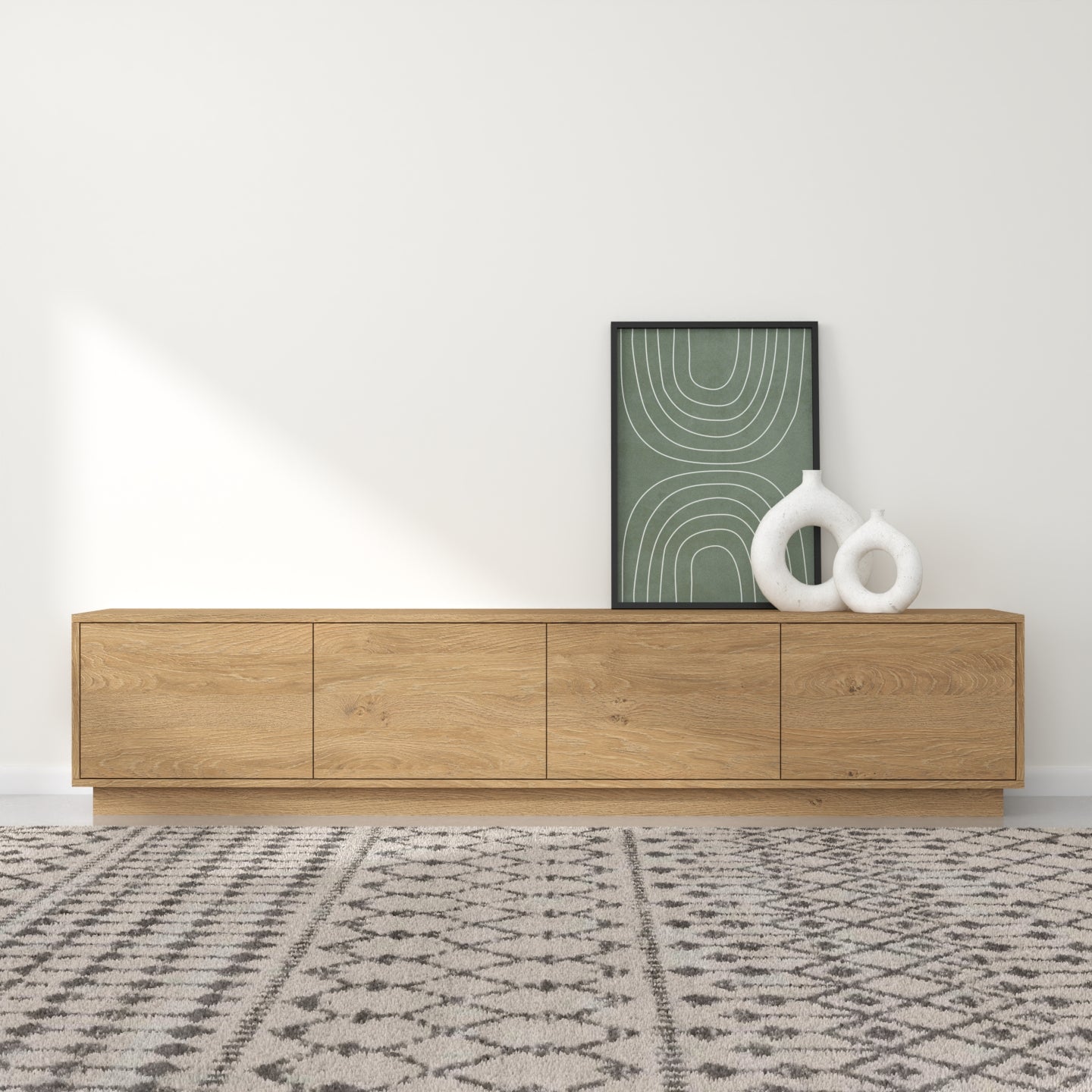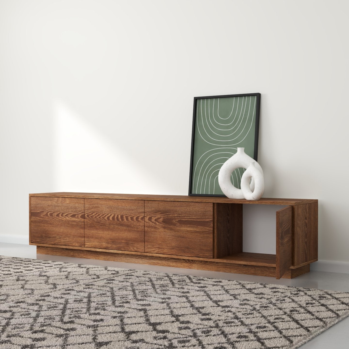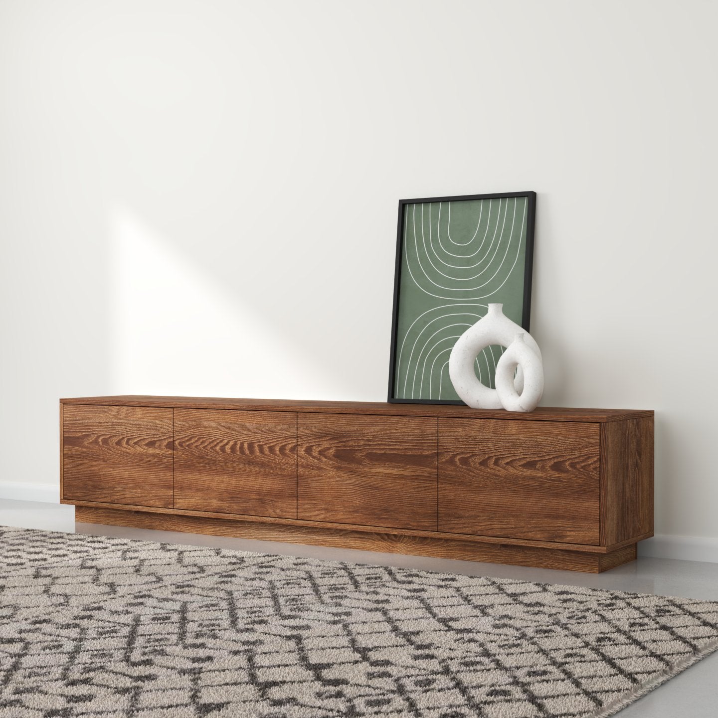 "Horizon" Ky emër ngjall një ndjenjë zgjerimi dhe vazhdueshmërie, duke pasqyruar modelin horizontal të vijave të drurit që rrjedhin nëpër dyert e komodinës. Ai gjithashtu flet për siluetën moderne dhe të hijshme të pjesës, duke përfaqsuar një lidhje me linjën ku toka takohet me qiellin, duke theksuar ekuilibrin dhe harmoninë e natyrshme në filozofinë e saj të dizajnit.