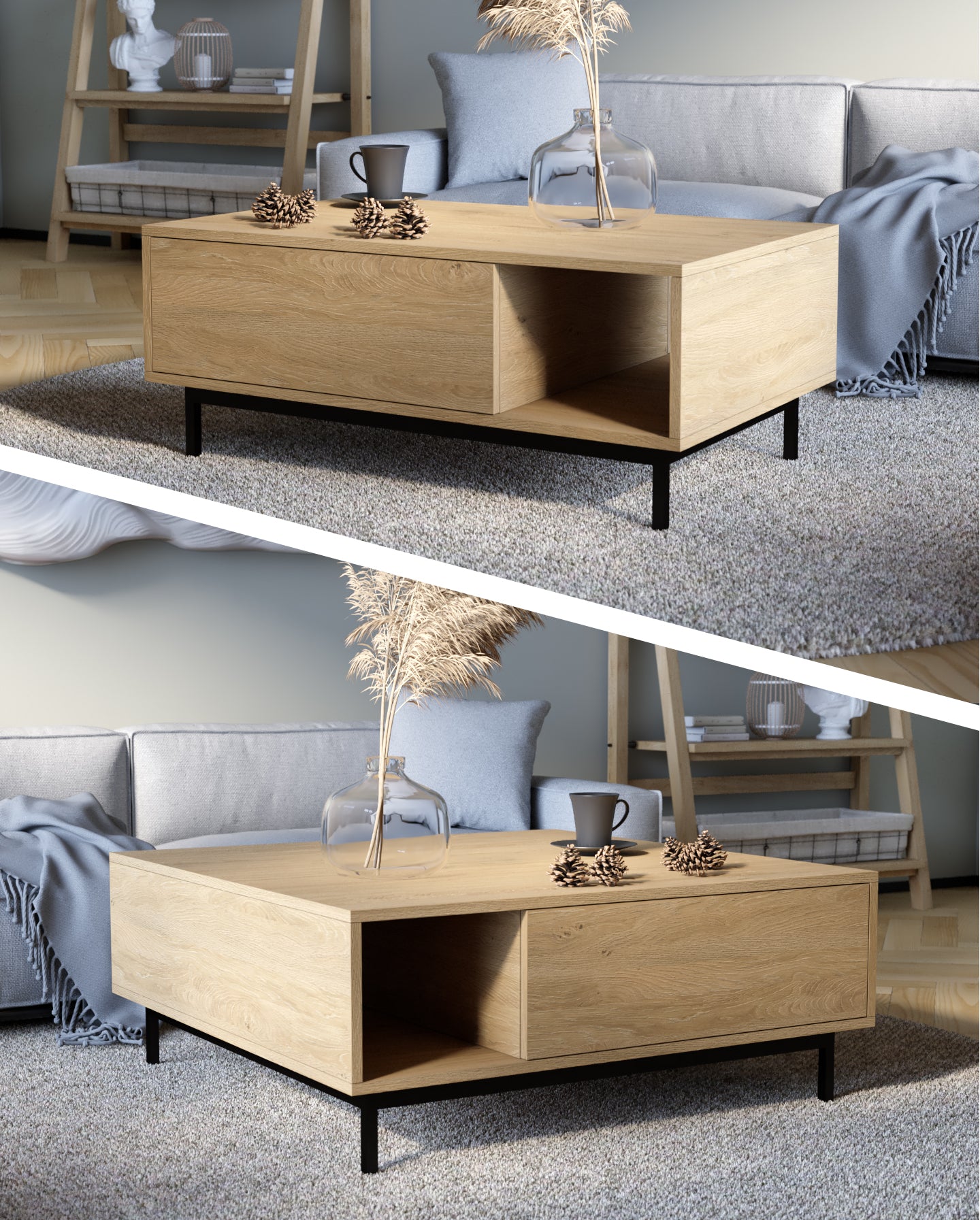 Të dyja opsionet përmbushin dizajnin elegant të tavolinës, duke e lejuar atë të integrohet pa probleme në stile të ndryshme të brendshme.