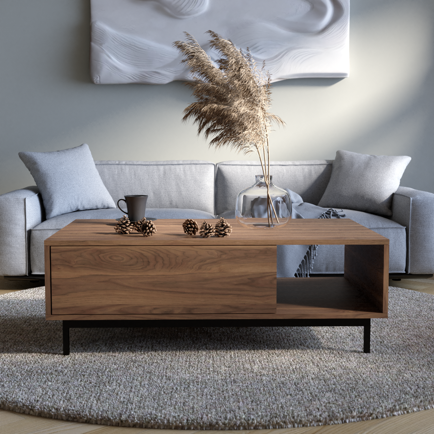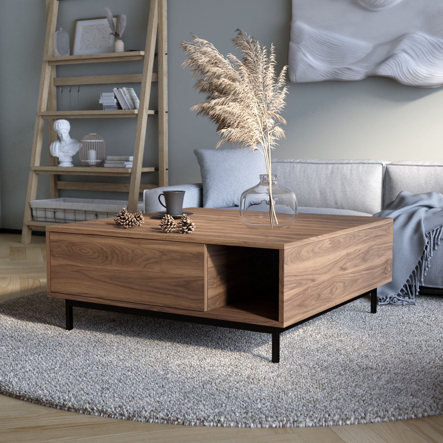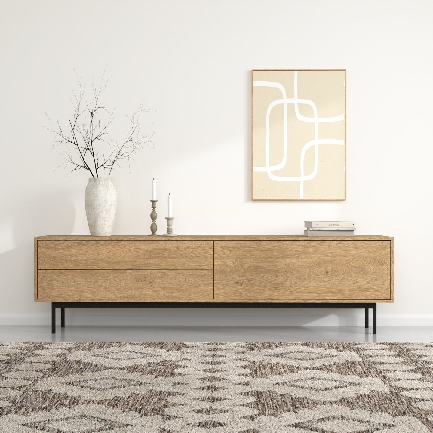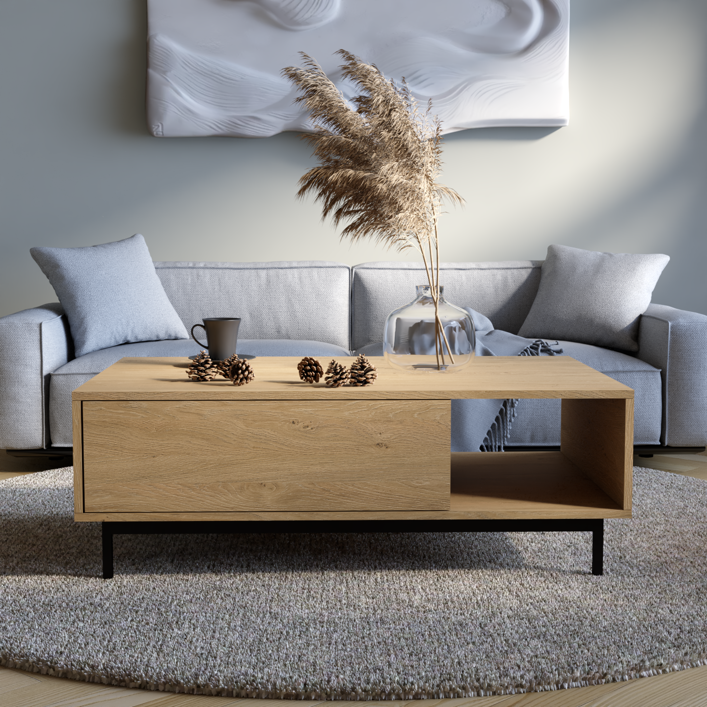 "Naya" kombinon stilin me funksionalitetin e zgjuar. Ajo përmban një raft të hapur për qasje të lehtë dhe dy ndarje të mbyllura që hapen me një shtypje të lehtë, duke siguruar ruajtje të përshtatshme me një pamje moderne dhe elegante.
