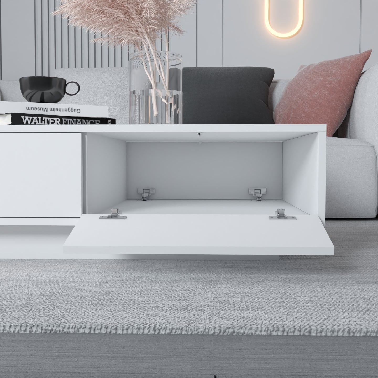 Dyert e saj që hapen me shtypje të lehtë dhe ndarjet e bollshme ofrojnë akses praktik dhe ruajtje të organizuar, ndërsa linjat e mprehta dhe ngjyrat moderne e bëjnë atë një element qendror elegant që përmirëson çdo hapësirë jetese.