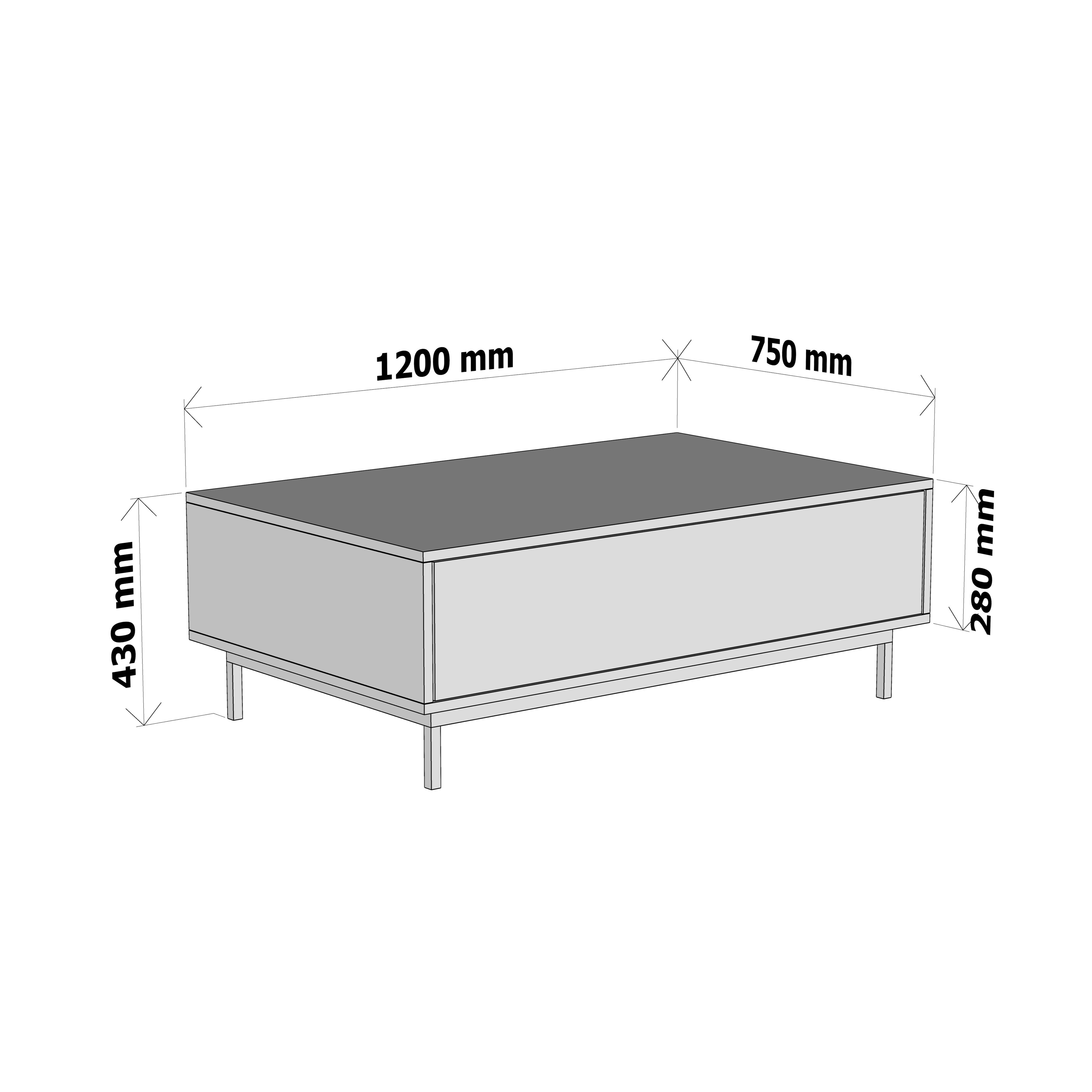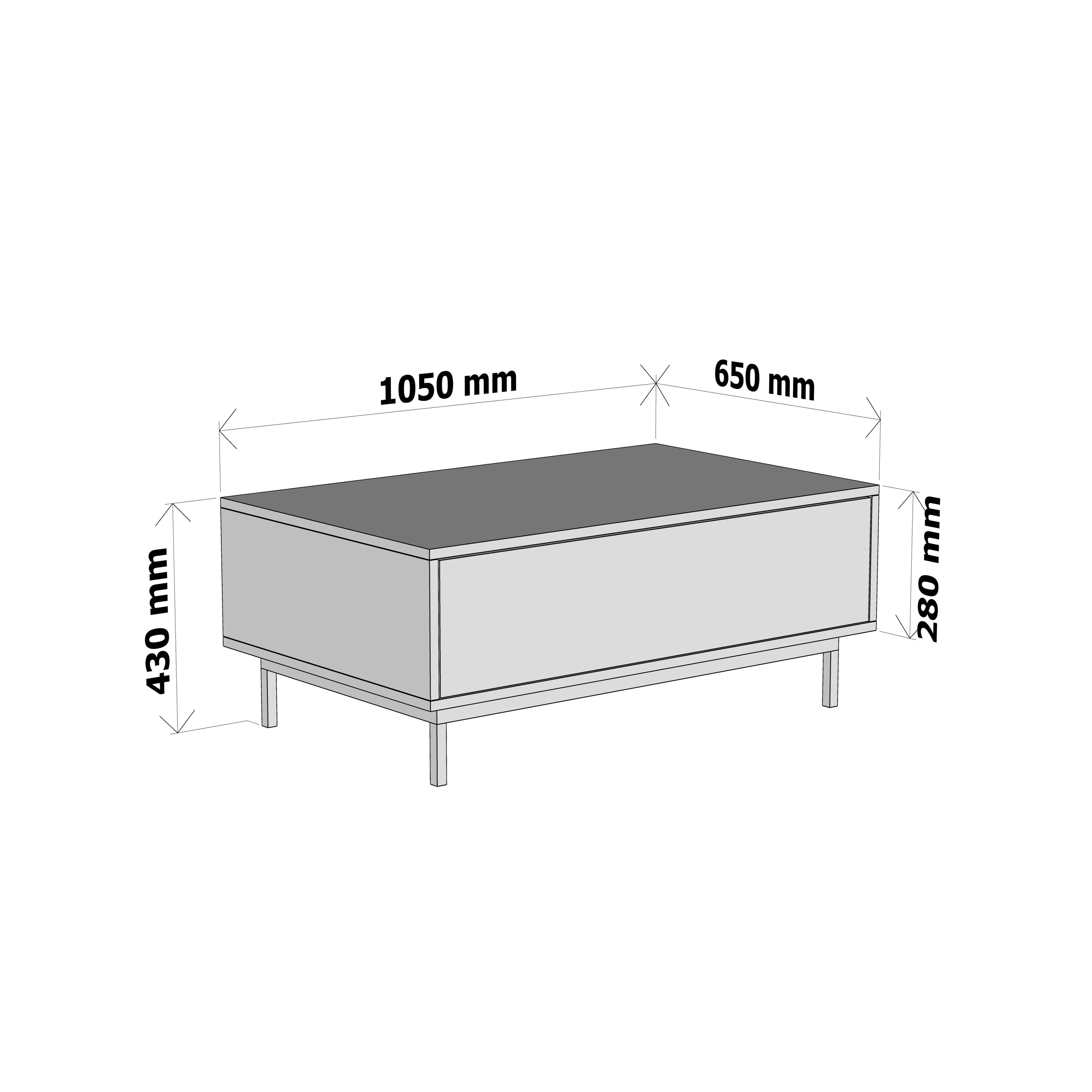 Tavolina e kafesë "Indira" kombinon stilin me prakticitetin. Ajo përmban dy ndarje të cilat hapen me një shtypje të butë, duke ofruar qasje të lehtë dhe ruajtje diskrete. E projektuar për përdorim të përditshëm, ajo ofron formë dhe funksion në një hapësirë moderne të jetesës.